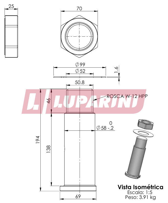INCLUYE TUERCA FORJADA Y ARANDELA